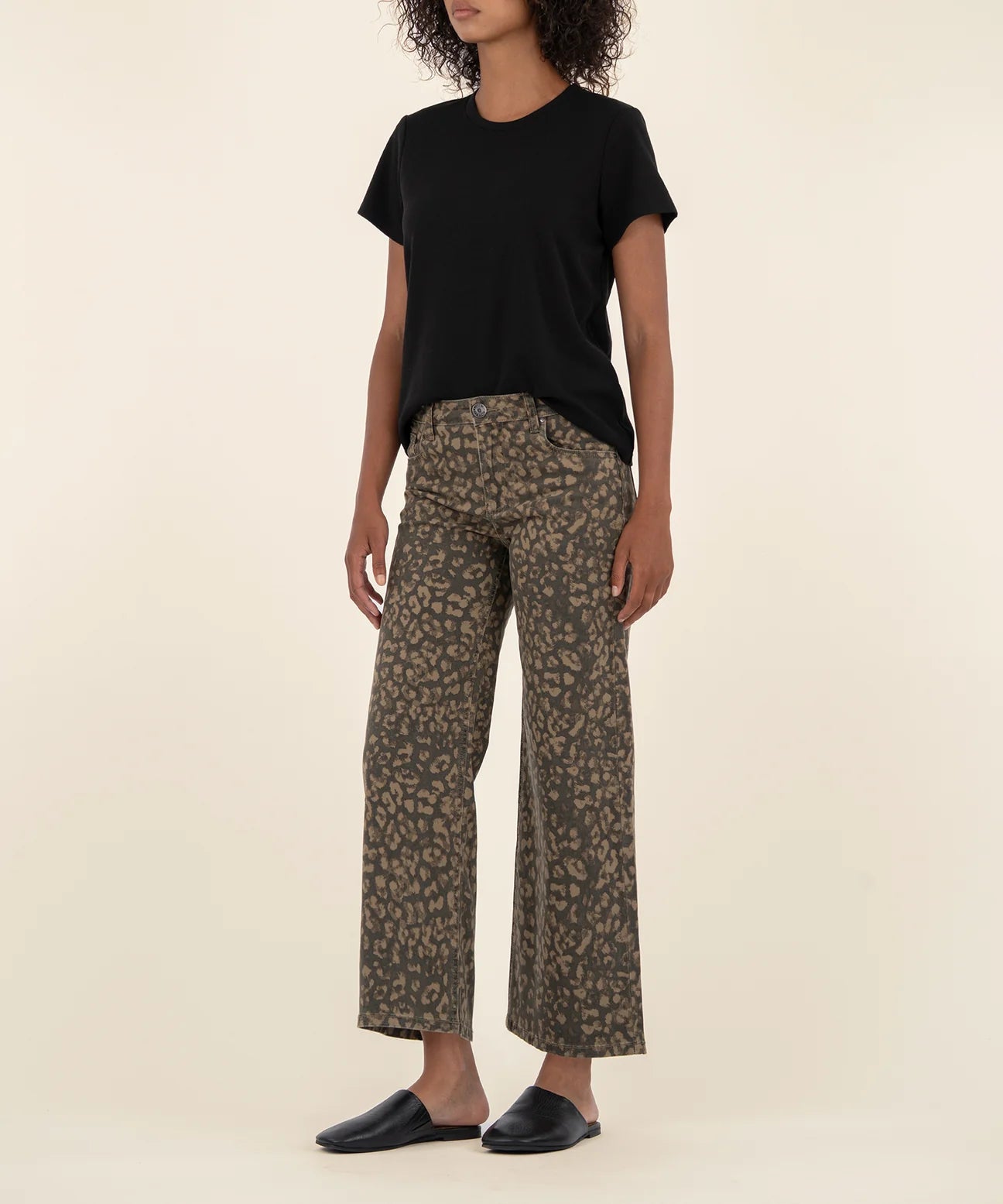 Elevate your wardrobe with the Meg High Rise Wide Leg jeans from Kut from the Kloth. Featuring a bold leopard print on a dark wash fabric, these high-waisted jeans offer a flattering fit and a trendy wide-leg silhouette. Perfect for making a stylish statement while staying comfortable, they effortlessly blend classic and contemporary vibes for a standout look.