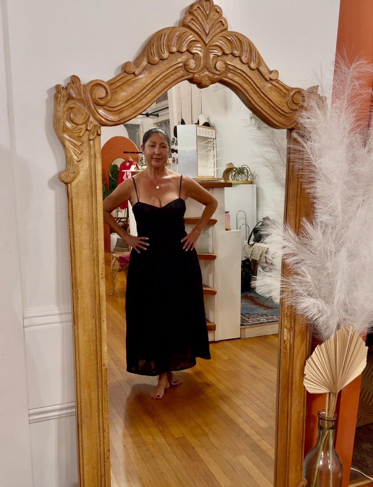 Elevate your wardrobe with the Ingrid Midi Dress by Lucy Paris. Featuring a chic black base adorned with a delicate floral pattern, this dress combines elegance with a touch of femininity. Its midi length offers a versatile silhouette perfect for both casual outings and special occasions, seamlessly blending style and comfort. Perfect for those who appreciate subtle yet sophisticated fashion statements.